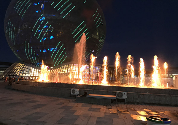 哈薩克斯坦世博會音樂噴泉是由德國、土耳其和中國三方共同承建的。在這個項目中,長沙喜馬拉雅音樂噴泉設備有限公司作為中國唯一的供應商,提供了多項噴泉設備,包括24組火球、42組水上火噴泉、2組UFO搖擺噴泉和10組海鷗噴泉。