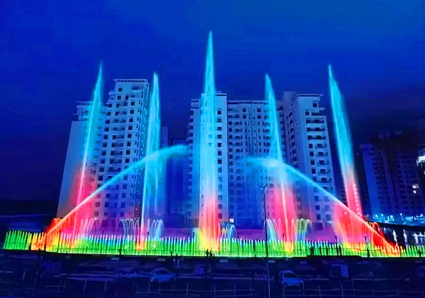 阿達尼漂浮音樂噴泉的噴頭數量眾多,能夠產生豐富多樣的噴水效果。噴泉燈光的運用進一步增添了視覺的魅力,使得噴泉在夜晚展現出炫目的色彩。