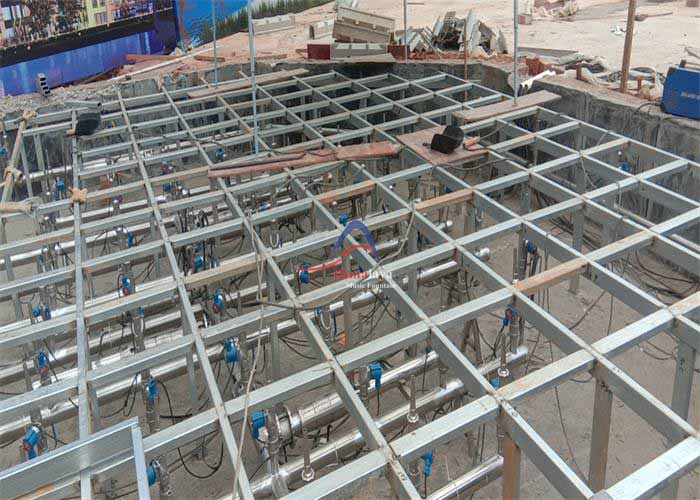 該項目設計為廣場音樂噴泉,呈矩陣排列并結合DMX燈光控制,形成追逐跑動、分組、交替、差時等變化,噴泉預計7月15日試運行。