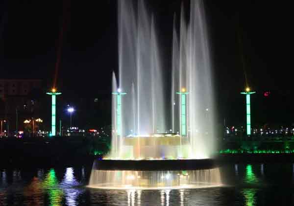 第一高噴泉集聲、光、水、色于一體, 由主噴和副噴兩部分組成。主噴169米的水柱直沖云霄,氣勢雄偉,蔚然壯觀,顯示出欲與天公試比高的氣派,為目前亞洲第一高噴泉;副噴由1068個噴嘴、618盞水下彩燈組成,在歡快愉悅的樂曲中,通過直噴、水簾、水浪、水松、內拋、搖擺、編網等8種水型,不斷組合成數十個變幻莫測、絢麗多姿的噴泉景觀,有似流金溢彩、火樹銀花,有如孔雀開屏、彩虹飲澗;是水的畫、燈的詩,給人以美的享受。