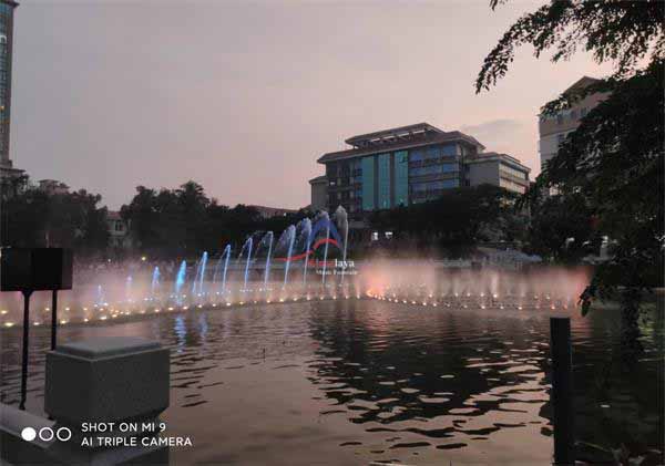 音樂噴泉設計尺寸40*25米,噴泉由370個噴頭共計8組水型組成,利用喜馬拉雅噴泉先進的軟件編程技術,對音樂進行編程,使噴泉造型與音樂旋律、燈光同步結合而產生千變萬化的噴泉水景。