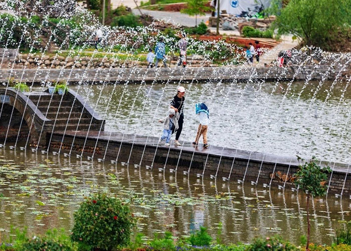 長沙喜馬拉雅音樂噴泉設備有限公司為廣東新興縣天露山量身定制的互動噴泉組已完工