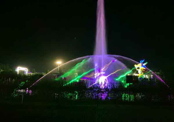 音樂噴泉設計為長46米、寬10米弧形設計,噴泉由8組水型、3臺激光組成,音樂噴泉利用喜馬拉雅噴泉先進的軟件編程技術,實現噴泉聲、光、水的完美演繹。