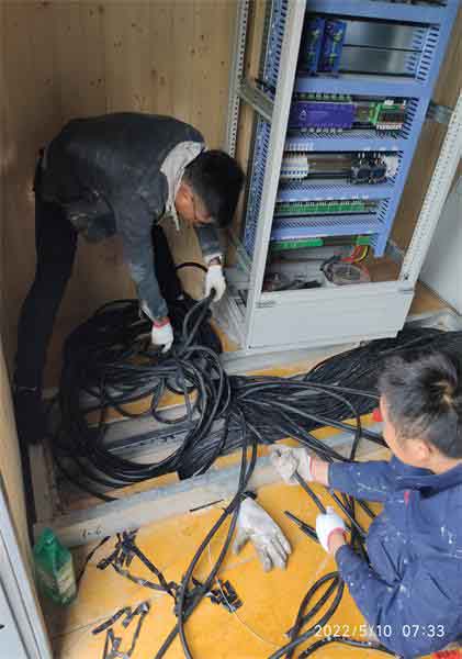 電纜的鋪設及防水連接:泵和燈的電纜按規定走線,以減少水下接頭為原則,電纜集中穿入電纜管,電纜近喇叭口膠封,泵和燈線按圖編號,電纜穿管可沿電纜溝鋪設到控制室,進入配電柜。水泵、閥門及照明燈具在安裝前必須先測試其性能,保證水泵的完好絕緣電 阻,用搖表測量,其阻值應大于 5 兆歐。照明燈具的導線必須采用防水電纜。接頭處要按規定工藝操作做好防水,連接必須牢靠。用兆歐表測試每路絕緣電阻,應在 5 兆歐以上。檢查水泵及燈具的接地線是否連接。