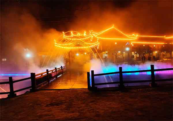 燈光角度調試:接通燈光設備的電源,調整光源的角度,使水型的燈光效果最好。