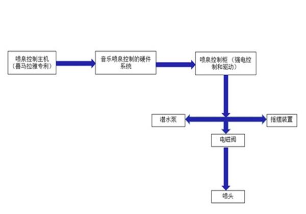 音樂噴泉生產的音樂噴泉設備是通過噴泉控制主機進行控制,原理框圖如下: