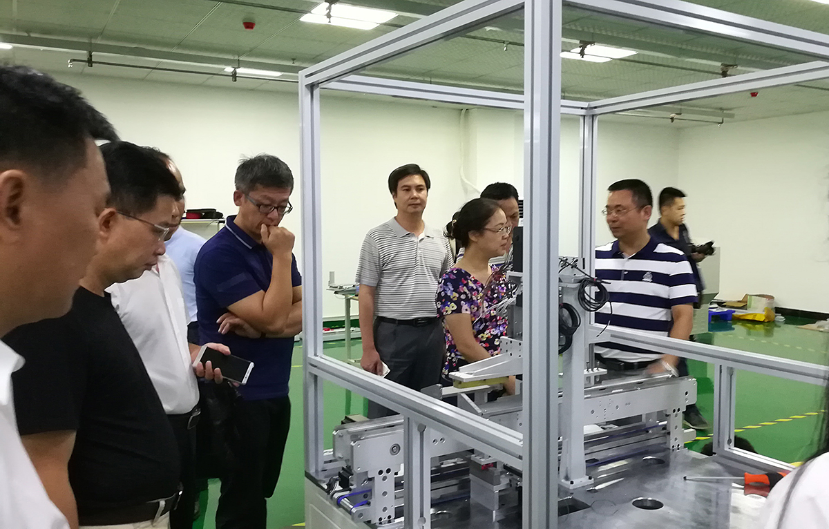 ? ? ? ?2017年8月29日,廣西桂平市市委書記鐘暢姿、副市長(zhǎng)蒙星強(qiáng)、中銘智享國(guó)際商務(wù)(深圳)有限公司董事長(zhǎng)焦建一行蒞臨深科特參觀交流,在總經(jīng)理陳林剛陪同下,參觀了深科特企業(yè)智能制造展廳和自動(dòng)化協(xié)作裝配中心,鐘書記和蒙副市長(zhǎng)一行詳細(xì)了解了深科特“智能柔性生產(chǎn)解決方案”,對(duì)深科特一系列的智能裝備產(chǎn)品以及MES解決方案豐富的實(shí)戰(zhàn)應(yīng)用表示贊許。