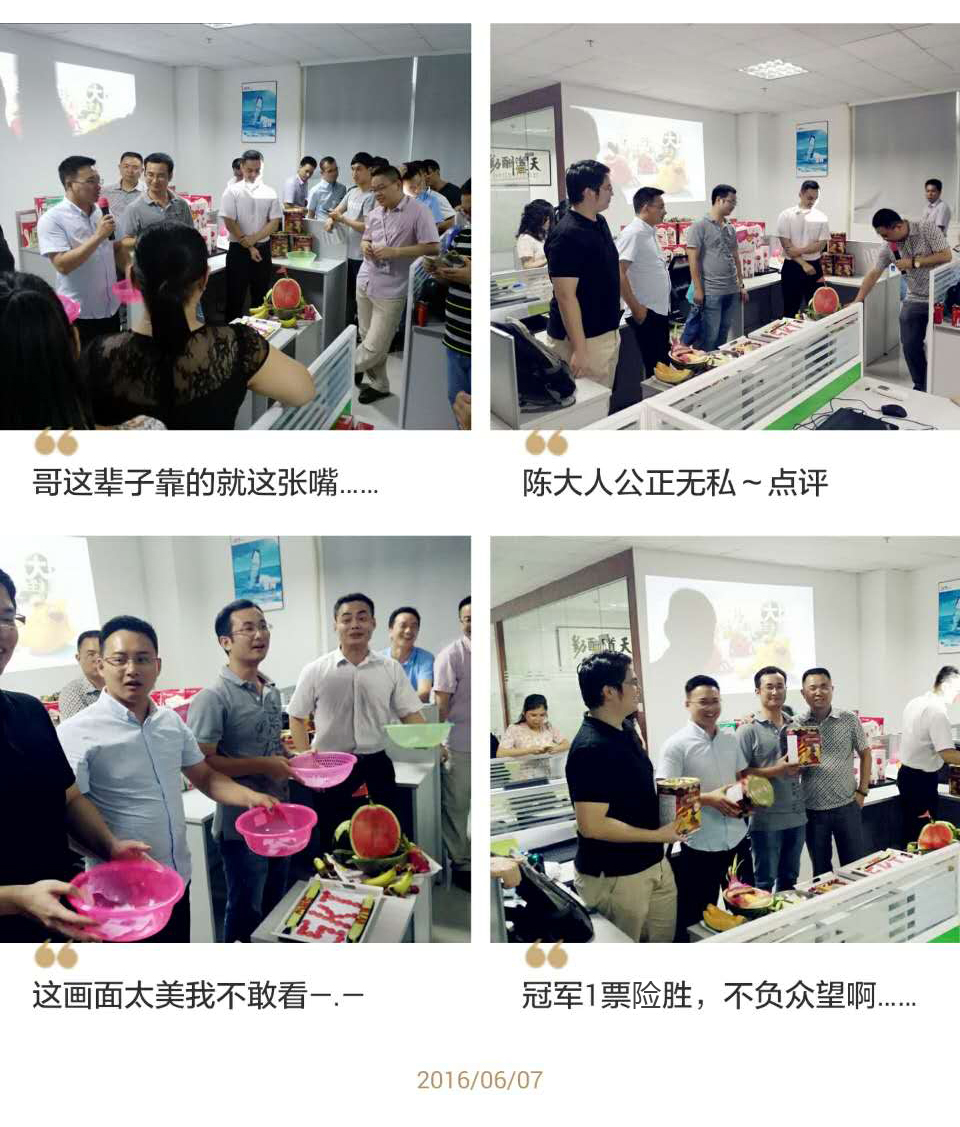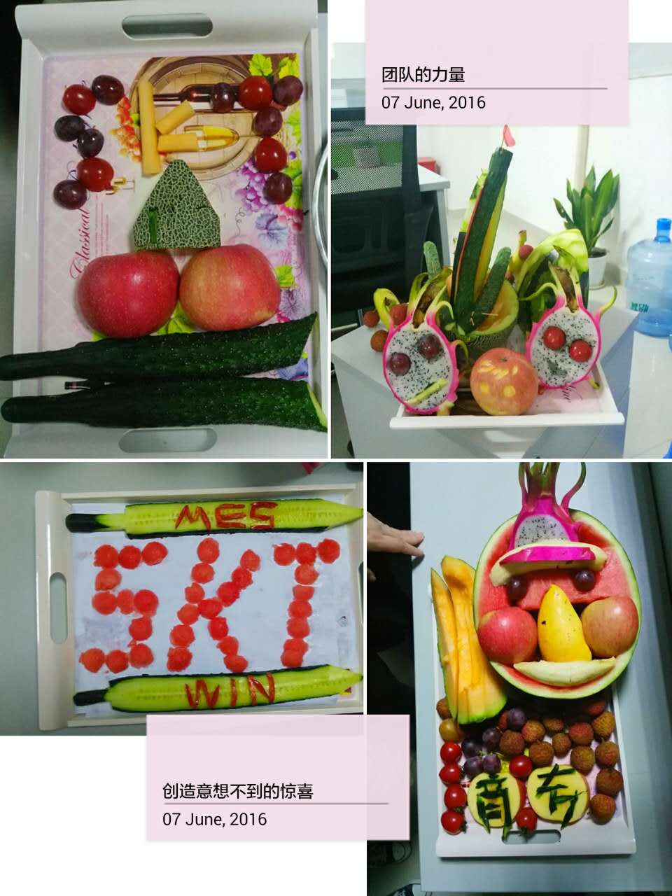 ?全員會議結束后,介于深圳略顯炎熱躁動的天氣,公司決定給大家來一場“水果降溫”措施,舉辦一次輕松有趣的水果創意拼盤大賽,目的讓參與隊員在集體活動中培養起分工協作、相互配合的默契與集思廣益的團隊精神。平日思想火花碰撞的辦公室,在公司行政美女的精心部署下,被布置成別致的活動場地,努力裝點的背影后,是一場待啟的歡樂Party。