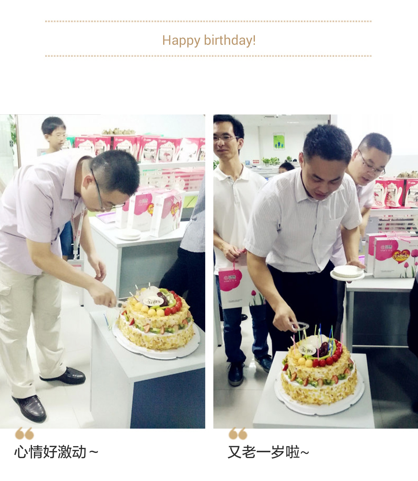?在歡快的游戲過后,深情的戲碼還有一段,“溫情牌”生日蛋糕隆重登場,為壽星們獻上了公司的貼心關懷。
