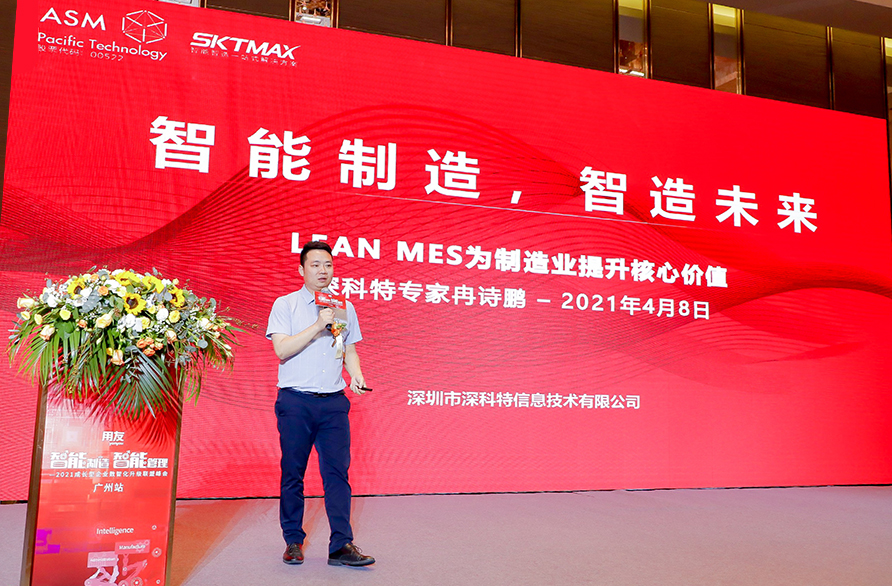 深科特作為電子行業MES系統的一流品牌服務提供商,其高級咨詢專家冉詩鵬先生介紹了基于制造業數字化轉型由淺入深的多個落地路徑,以LEAN MES系統為核心,與機器人、智能物流、立體倉庫、機器設備深度集成,展示了電子行業企業轉型升級的整體規劃。