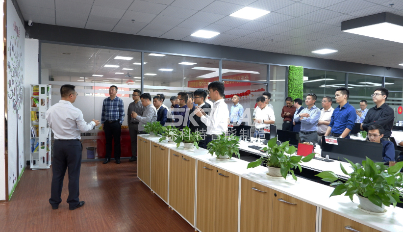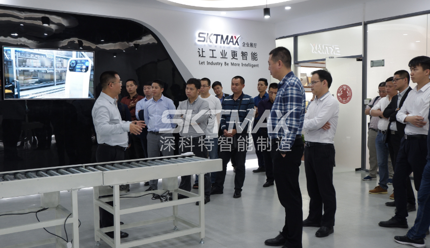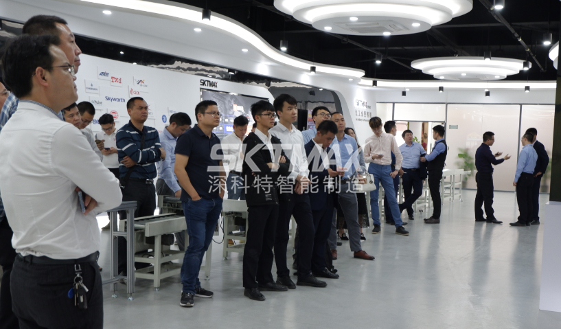 ? ? 隨后,與會嘉賓在深科特總經理的帶領下,參觀了企業辦公區、智能制造展廳、企業文化墻、自動化裝配中心等。經過陳總詳盡的講解,各企業家感受到了公司深厚的企業文化氛圍和雄厚的品牌實力,特別是在參觀MES系統電子看板時,都產生了濃厚的興趣,進行了深入的產品交流。