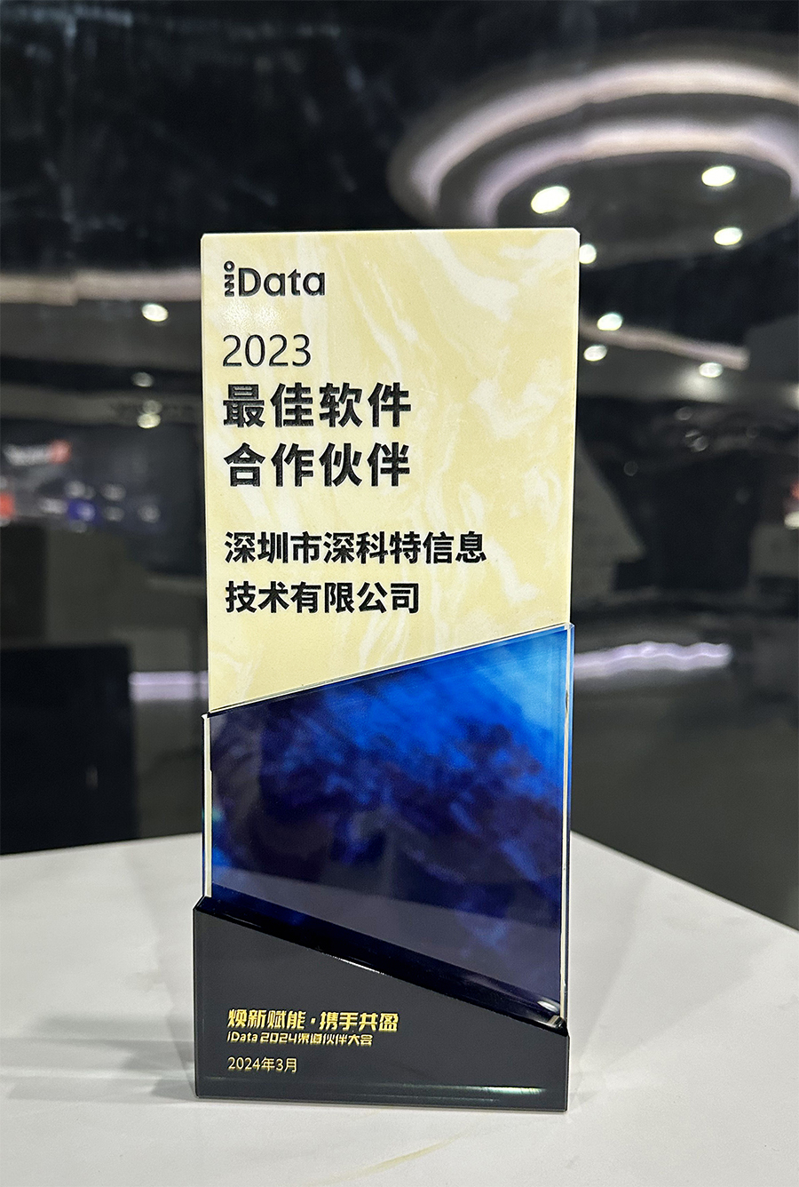 ? ? ? ?3月29日,iData渠道伙伴大會-深圳站成功舉辦,深科特榮獲iData“2023年度最佳軟件伙伴”稱號。深科特高層表示:iData給予的這一獎項不僅代表了深科特與iData共同發展、攜手前進的堅定決心,更是對雙方長期以來緊密合作關系的極高贊譽。它彰顯了深科特與iData并肩作戰、共同進步的精神,未來我們還將共同創造更大的產業價值。